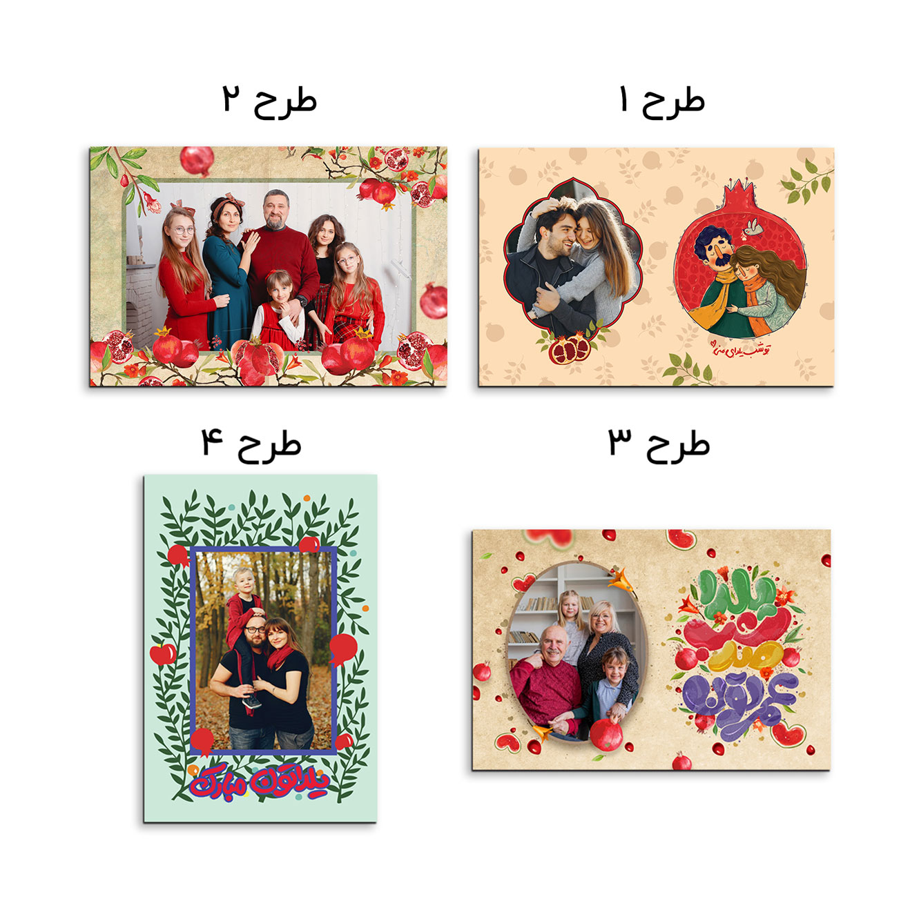شاسی شب چله در 4 طرح زیبای یلدایی هم به صورت رومیزی و هم دیواری قابل استفاده است.